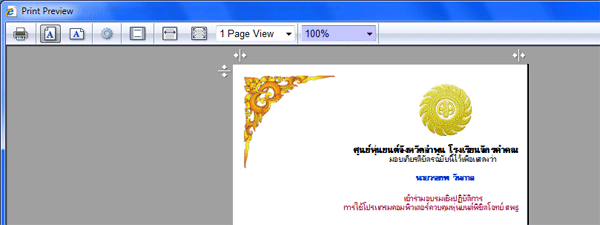 คลิก Menu เลือก "Print Preview" กำหนดมุมมองเป็น 100%